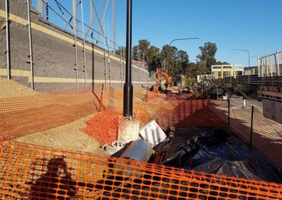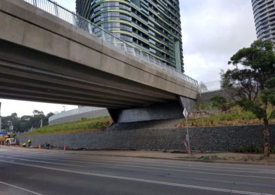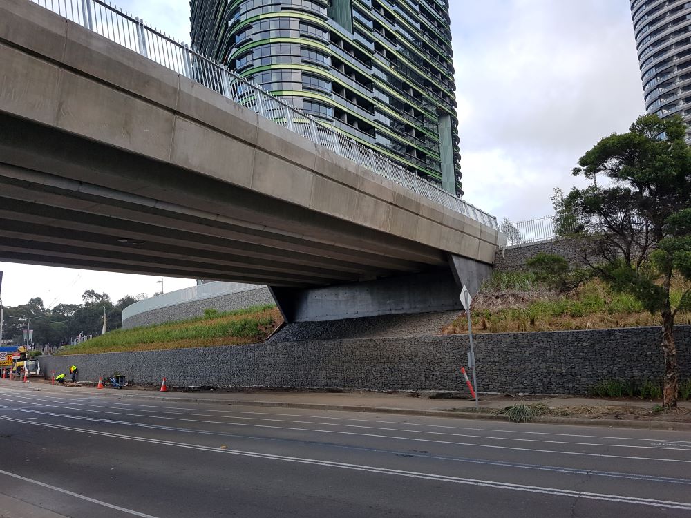 A taggers paradise became of what was to be an extensive 3 metre high decorative concrete pre-fab wall installation.