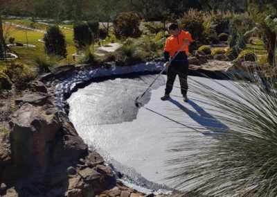 WaterproofingPLUS® were tasked with the repair of a chain of 4 decorative ponds, connected by a running watercourse of laid sandstone.
